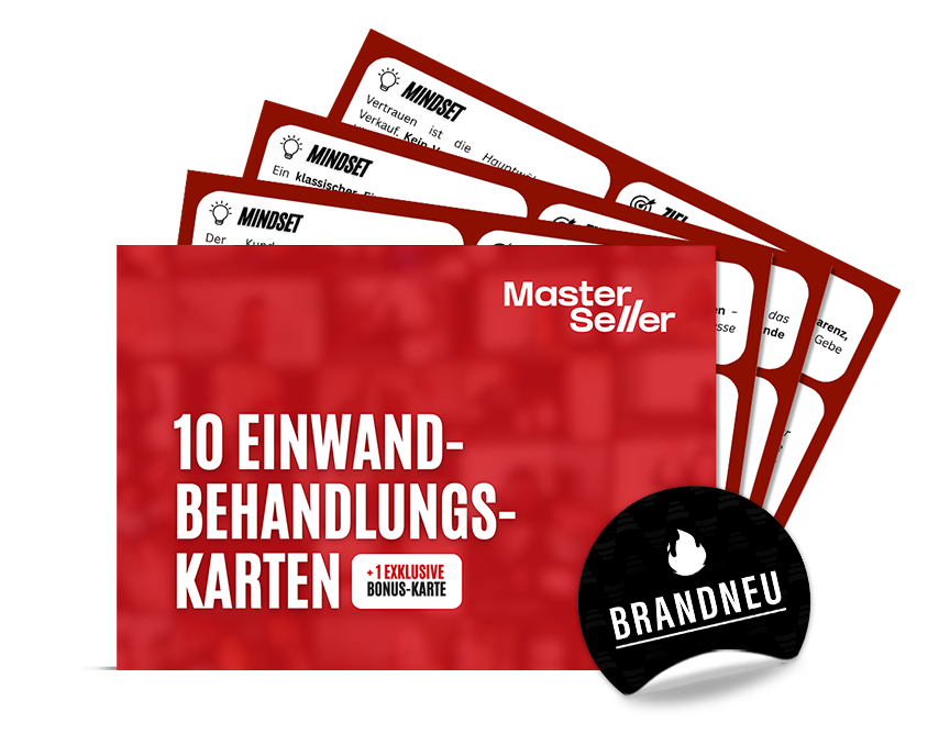 Genau aus diesem Grund habe ich das Einwand-Karten System entwickelt. Auf jeder Karte findest du klare Taktiken, die im echten Verkauf funktionieren.